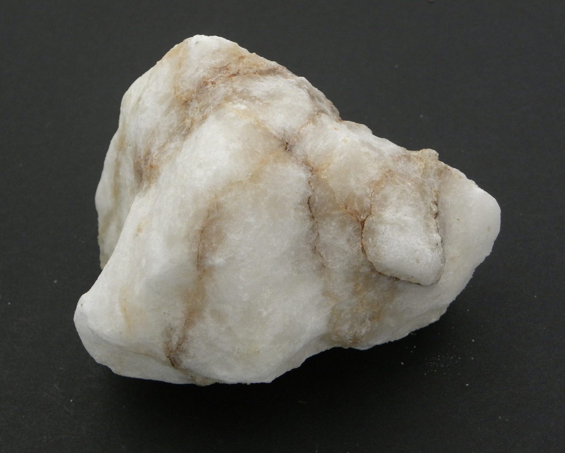 This piece of Gloucestershire White Gypsum Alabaster is from Aust, Southern Gloucestershire. Alabaster (calcium sulphate) from this location is an attractive  fine grained variety . This large specimen weighing half a kilo has attractive contrasting veins running through. Like most specimens that come from this beach, the sea has gently softened some of the edges. This makes it both tactile and a fine display piece or alternatively if used for its healing properties. Alabaster is a crystalline form of Gypsum, a hydrous sulphate of calcium. It is classified as an evaporite mineral, that was created by the evaporation of saline lakes, leaving the gypsum behind to solidify, millions of years ago. This white Alabaster from Gloucestershire together with the nodular pink alabaster from Somerset makes the Severn estuary a fascinating area for both minerals and also fossils. Pieces of Alabaster have traditionally been popular with sculptors, because of its fine grains the gypsum is easy to polish. It is a softer and also more easily workable alternative and substitute for marble.